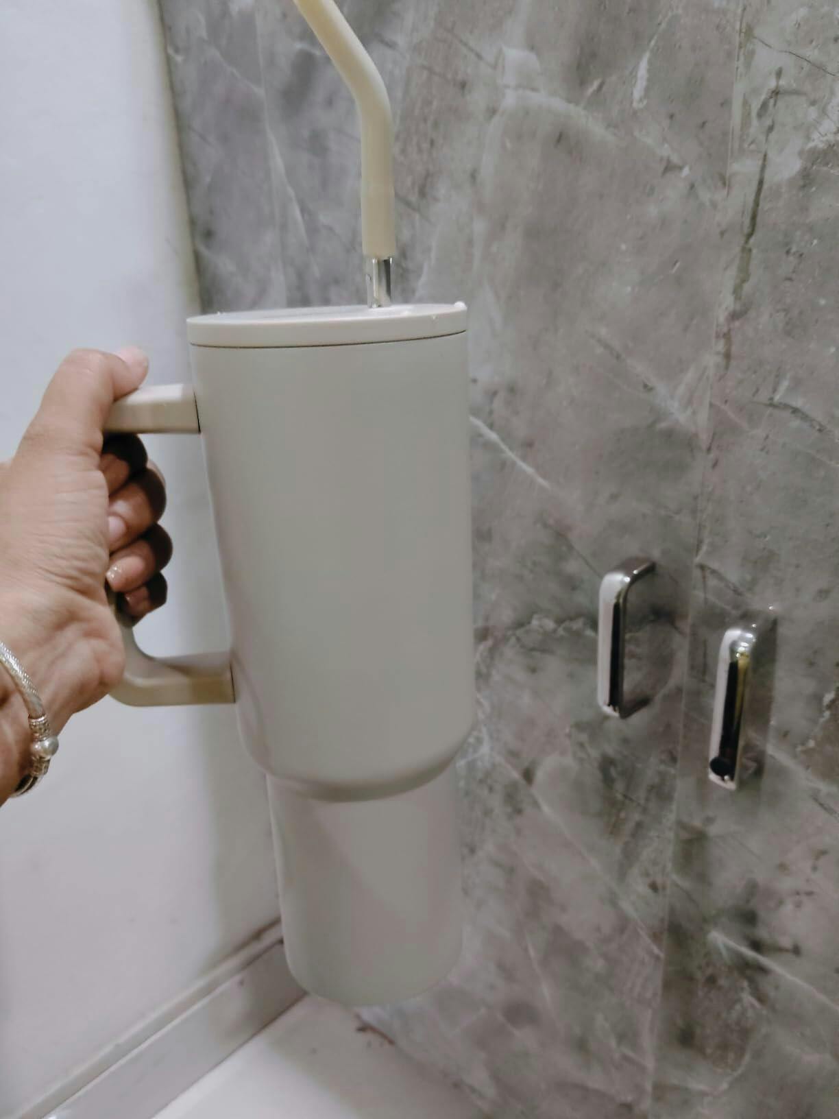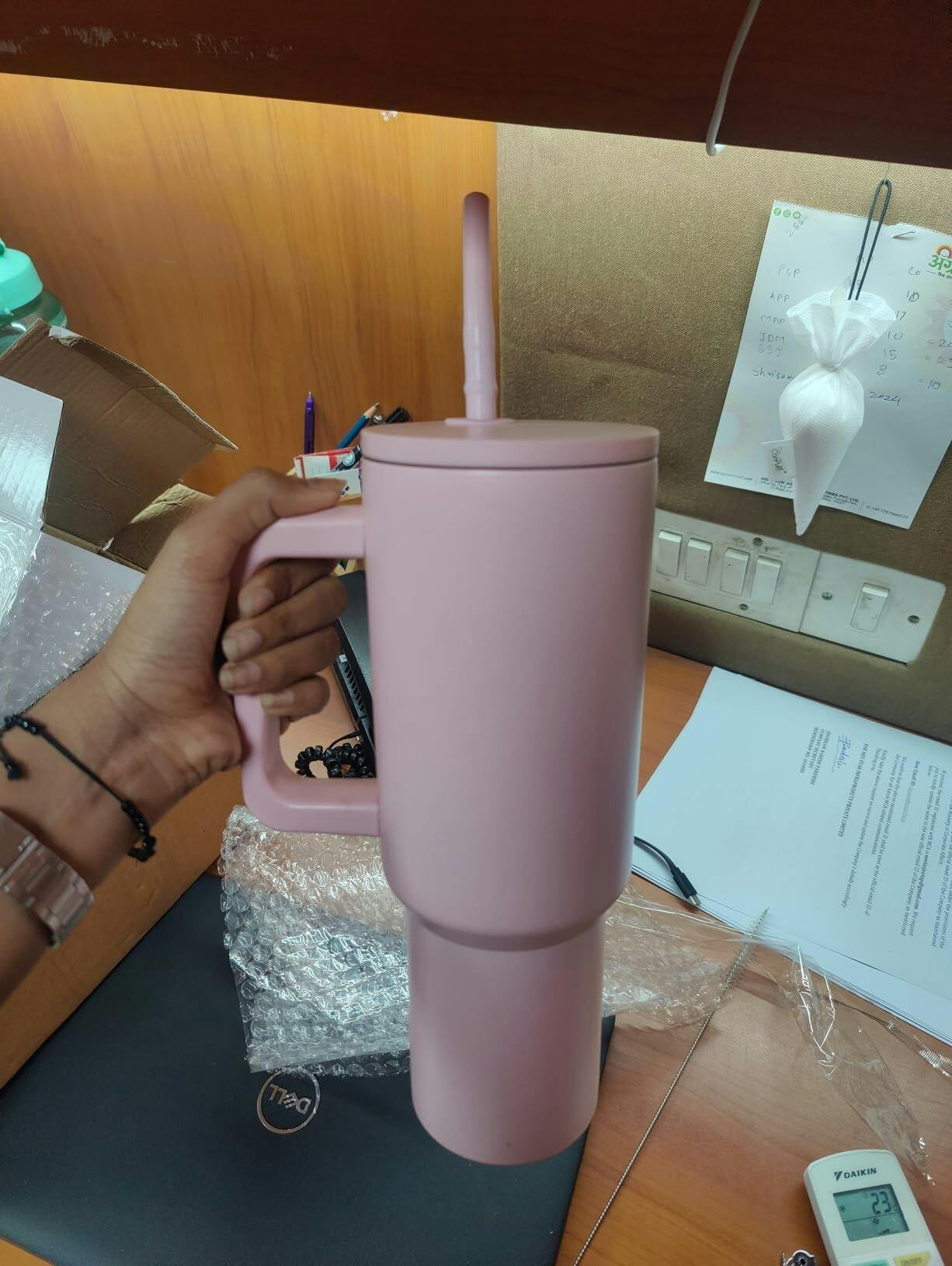With a large 1200ml (40oz) capacity, comfort-grip handle, and leak-resistant lid, it’s built for convenience and performance. The reusable straw makes sipping easy on the go, while its sleek, modern design fits perfectly in most car cup holders.